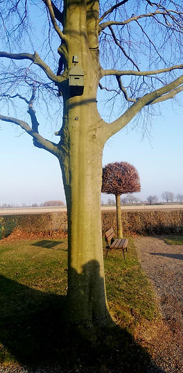 Bei Hilke und Andreas thront die Nisthilfe in einer großen Eiche